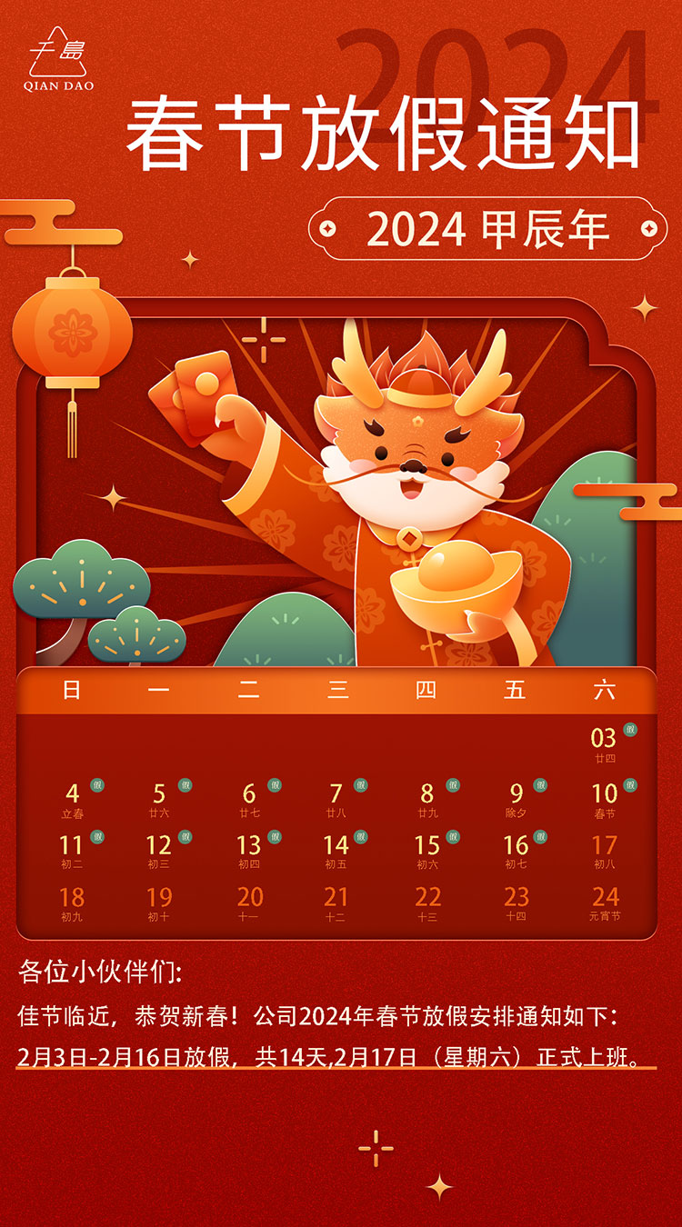 千岛机械-2024年春节放假通知