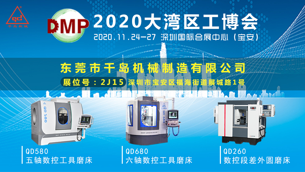 2020DMP大湾区工业博览会即将开幕,千岛机械诚邀您莅临参观指导,一起见证我们的成长。十年磨一剑,QD580五轴数控工具磨床、QD680六轴数控工具磨床,与您相约。